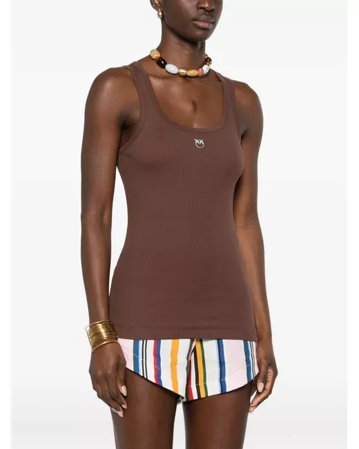 brown logo detail round neck sleeveless ribbed detail slim fit