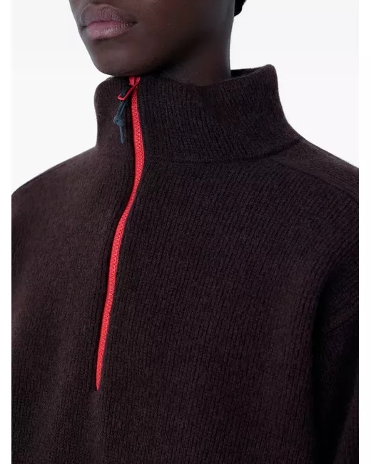 dark brown knitted construction high neckl quarter-zip fastening long sleeves