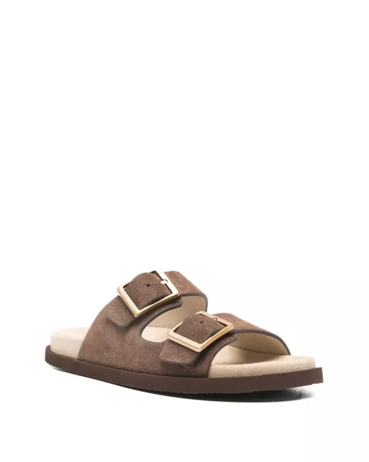 brown buckle detail leather sole open toe slip-on style flat heel This piece comes complete with a protective dust bag.