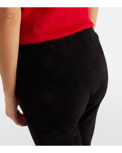 Material: 100% lamb leather (suede). Care instructions: machine wash at 30 degrees. Made in Portugal. Designer color name: Black. Material II: 97% cotton, 2.4% lyocell, 0.6% elastane. Lining: 95% silk, 5% elastane. Elasticated waistband. Includes: garment bag. Leather.