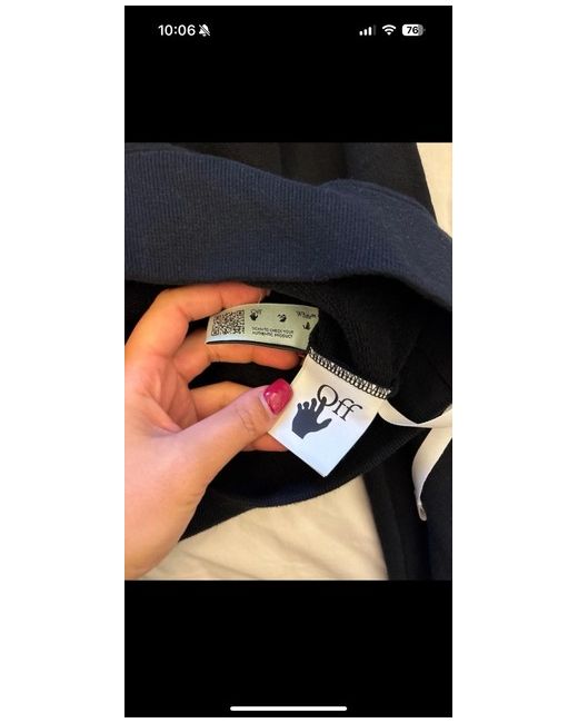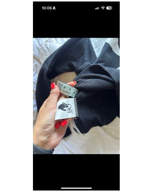 This Off-White unisex sweatshirt is a black pullover style made of cotton, suitable for winter wear. Featuring the Off-White logo as an accent, it is designed as activewear for women in a size medium. Brought for £350