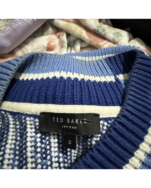 This Ted Baker Women's Jumper in size 3 is a stylish and versatile addition to any wardrobe. Made from a blend of polyamide and cotton in a tight-knit fabric, this jumper features a V-neckline and long sleeves, making it perfect for casual occasions. The blue colour adds a pop of colour to any outfit, and the regular fit ensures a comfortable and flattering silhouette. Ted Baker's signature style and quality make this pullover a must-have for any fashion-conscious woman looking for a classic and timeless piece.