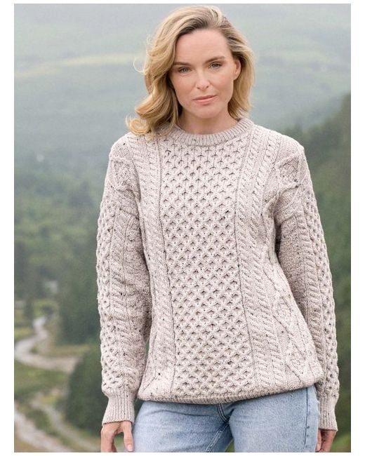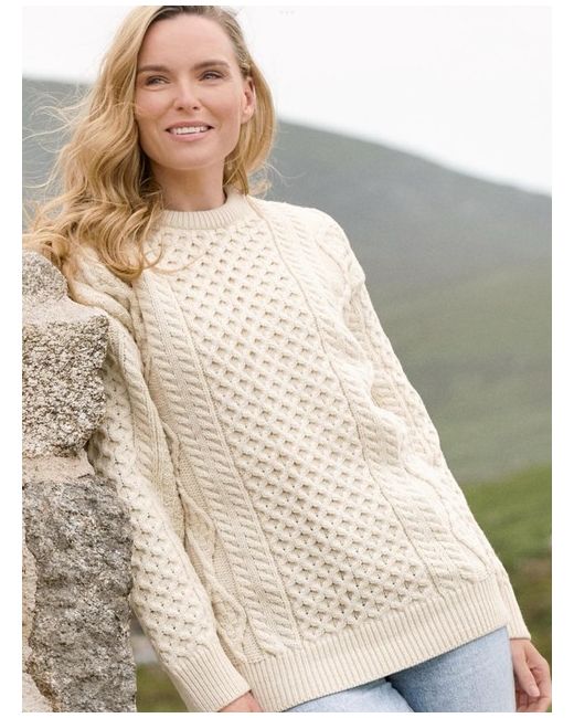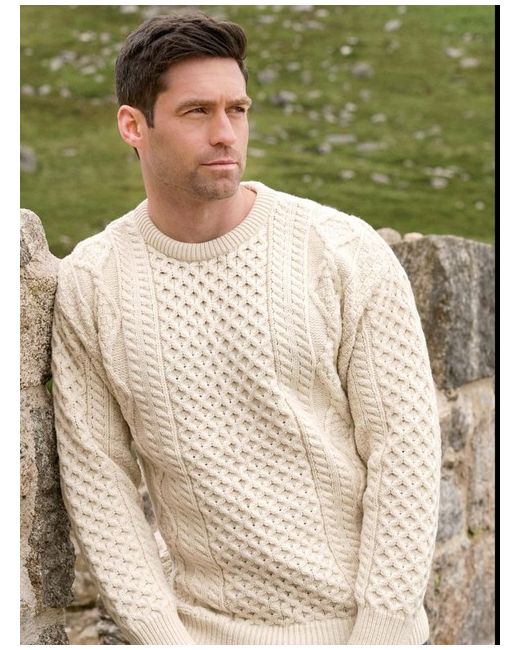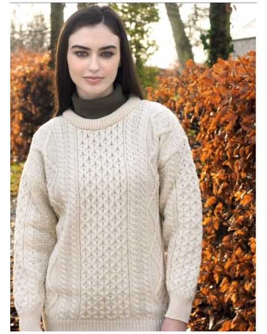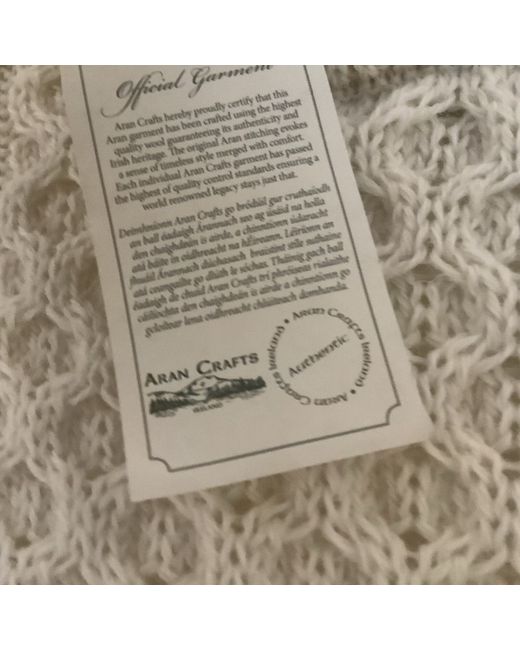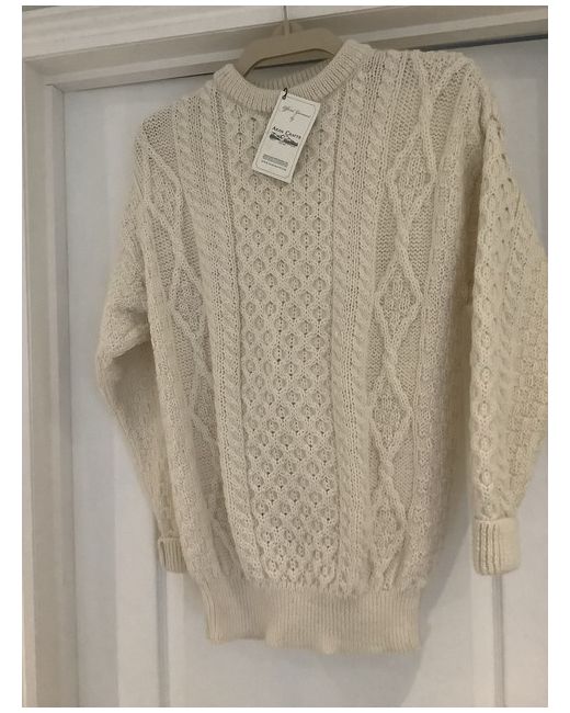 Made from 100% Pure New Wool. This unisex Irish Aran sweater incorporates a variety of Irish Aran Stitches that were believed to bring luck, success, and health to the wearer. Warmth is the key to this style and made with 100% wool it is sure not to let you down. A lovely bright cream. Although this is a medium, it’s a unisex sized fitting From website :- Garment length: XSmall 24″ Small 25″ Medium 26.5″ Large 27.5″ XLarge/XXLarge 28.5″