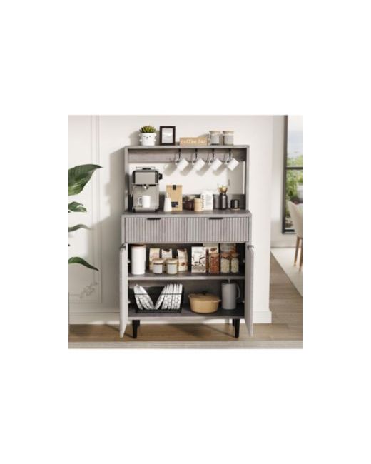 Organize your space with this modern fluted sideboard buffet cabinet in grey, featuring 2 drawers and adjustable shelves. It makes a stylish coffee bar or buffet in dining rooms, kitchens, or living areas, combining sleek lines with practical, flexible storage.