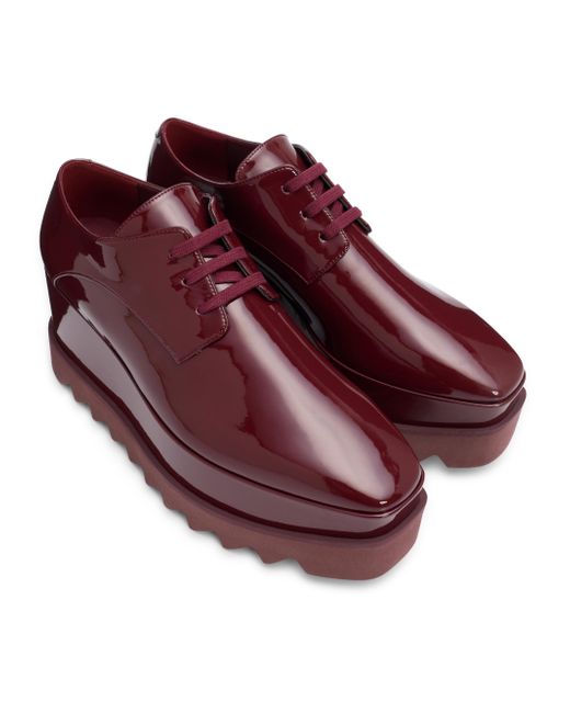 Stella McCartney's Elyse lace-up loafers are crafted of vegan patent leather and defined by a covered platform tread sole. Square toe Lace-up style Textile upper Textile lining Synthetic sole Made in Italy SIZE Covered platform: about 3" (80mm). Women's Shoes - European Designer Shoes > Stella Mccartney > Saks Fifth Avenue. Stella McCartney. Color: Red Gala. Size: 5.