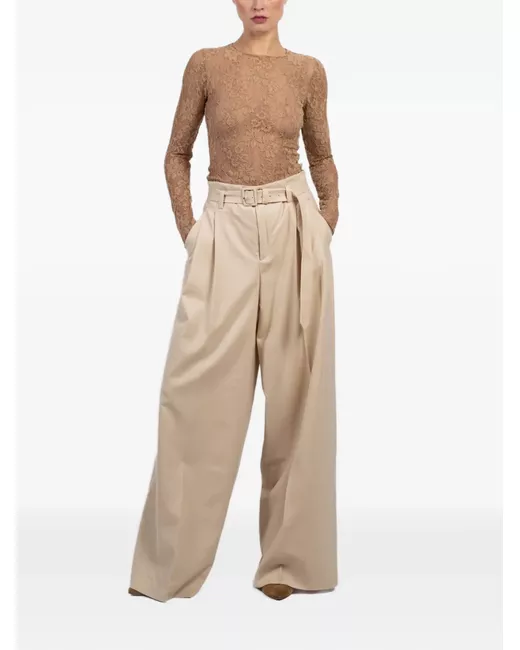 Coco Belted Guipure Lace Cotton Flared Pants Camel