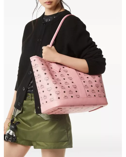 pink monogram print top handle gold-tone hardware detachable pouch internal slip pocket