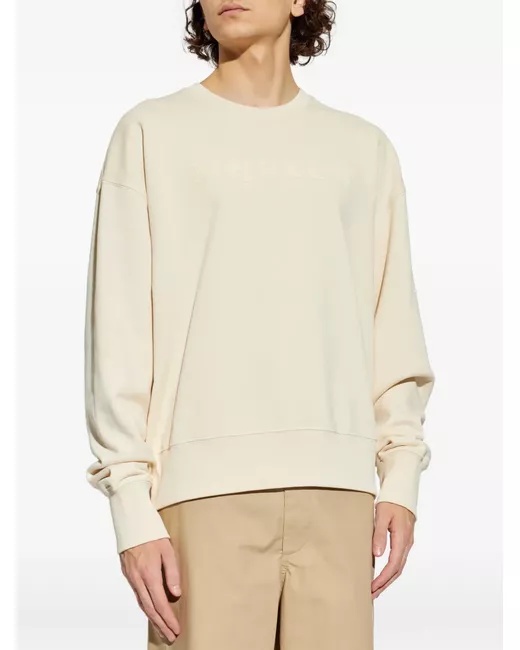 cream tonal logo lettering crew neck long sleeves ribbed hem ribbed cuffs