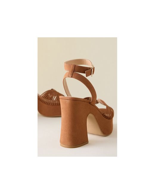 By Maeve Leather upper, insole Rubber sole Buckle styling Imported Platform Heels by Maeve in Brown, Women's Size: 36, Leather/Rubber at Anthropologie