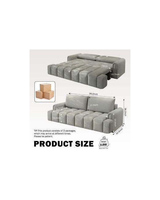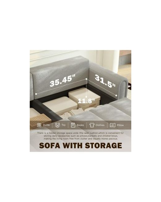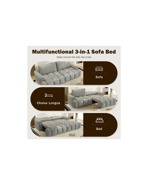 The 3-in-1 Sleeper Sofa brings comfort, storage, and versatility to your home. Upholstered in ultra-soft teddy fabric, this 90" wide couch easily converts from a spacious sofa into a king-size pull-out bed—perfect for overnight guests or relaxing weekends. The chaise features hidden storage, ideal for blankets, linens, or books, keeping your space clutter-free. With a deep 25.2" seat, it's built for lounging and taller users. Its solid wood frame offers long-lasting durability, while smooth-rolling casters make rearranging effortless. Ideal for living rooms, small apartments, or guest rooms, it s the ultimate space-saving solution in style and function.
