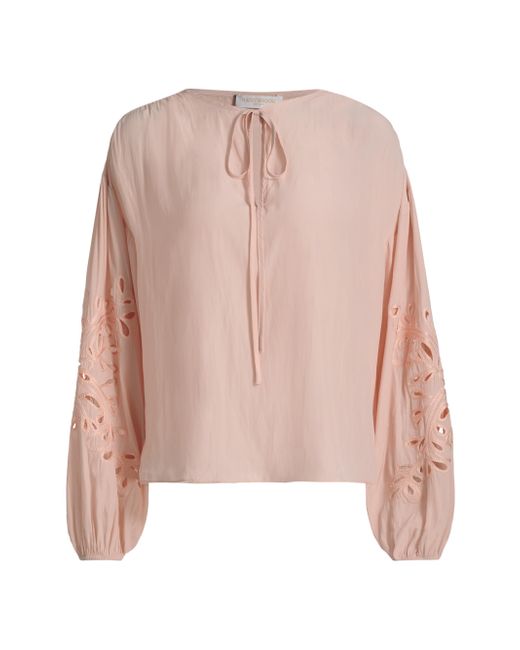 Cut in a drop-shoulder, relaxed fit, the Zenaida blouse from Ramy Brook features a self-tie neckline and eyelet embroidered blouson sleeves. Scoop neck Long sleeves Pulls over 100% polyester Dry clean Imported SIZE & FIT About 25" from shoulder to hem Model measurements: 5'10" tall Model is wearing a US size Small. Contemporary Sportswear - Contemporary Collections > Ramy Brook > Saks Fifth Avenue. Ramy Brook. Color: Dark Blush. Size: XS.