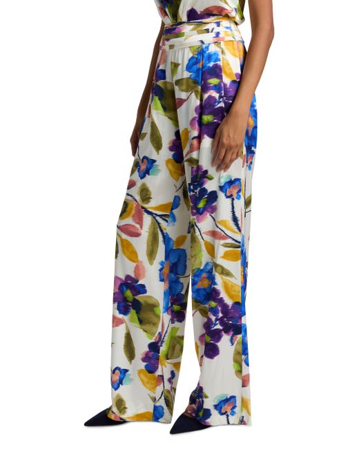 The Joss wide-leg pants from Ramy Brook are crafted of a stretch silk, featuring a vibrant floral print and an elasticated waistband. Elasticized waist Pulls on 95% silk/5% elastane Lining: 100% polyester Dry clean Imported SIZE & FIT Rise: about 10" Inseam: about 33" Model measurements: 5'10" tall Model is wearing a US size Small. Contemporary Sportswear - Contemporary Collections > Ramy Brook > Saks Fifth Avenue. Ramy Brook. Color: Ivory Floral Silk. Size: 0.
