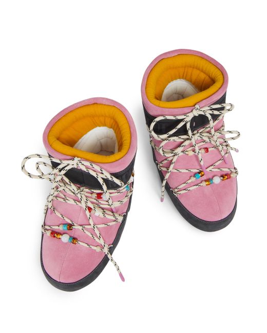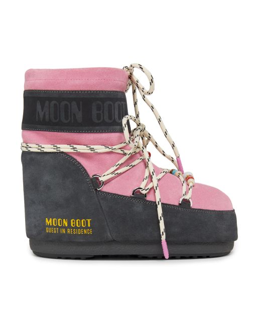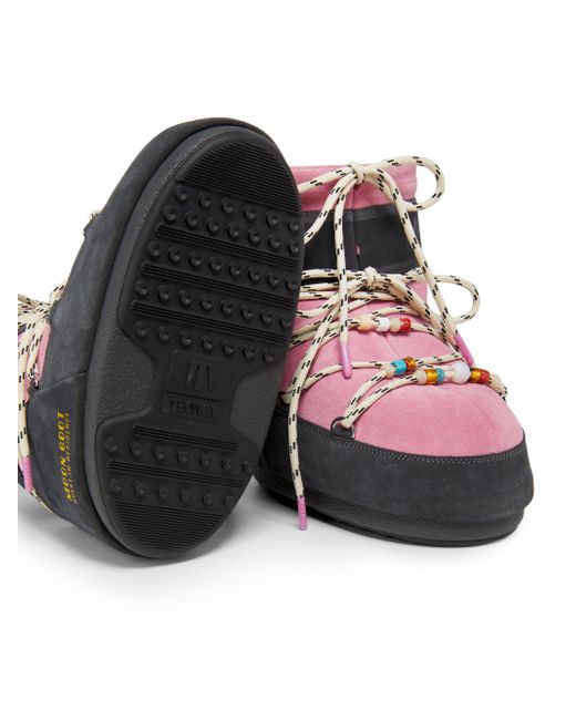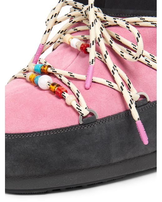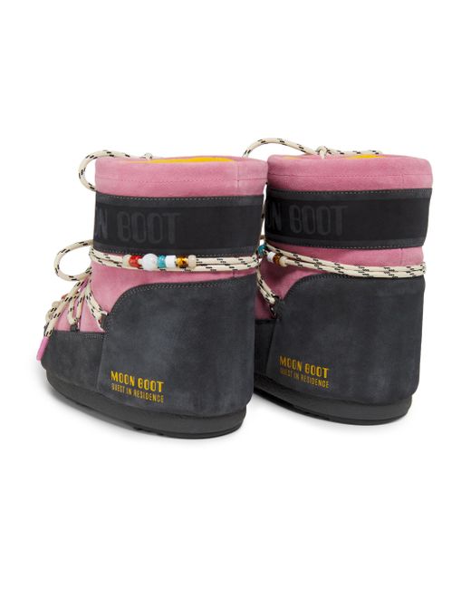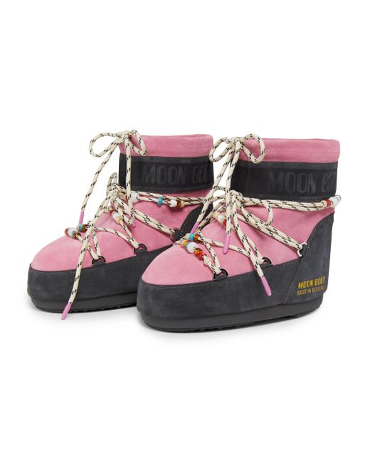 Designed with soft fleece lining, these Moon Boot Icon Low lace-up boots pair bright nylon with contrast suede trim and a thick, padded sole. Bright beads adorn the wraparound straps. Round toe Lace-up Suede/textile upper Textile lining Rubber sole Imported Please note: These boots are designed with an ambidextrous fit and can be worn on either the left or right foot. Women's Shoes - Cold Weather > Moon Boot > Saks Fifth Avenue. Moon Boot. Color: Grey Rose. Size: 4.5.