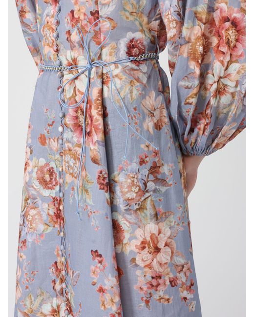 Zimmermann Awaken Floral Linen Midi Dress