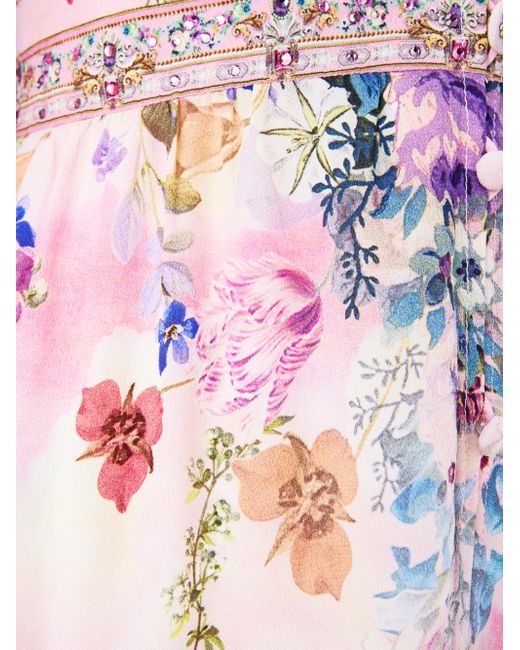 The floral minidress from Camilla is crafted of silk and features a button-front design with long bishop sleeves and layered hem detailing. Plunging V-neck Long sleeves, button cuffs Elasticized waist Layered hem Button-front closure 100% silk Dry clean Imported SIZE & FIT Model measurements: 5'10" tall Model is wearing a US size Small. Modern Collections - Branded Separates > Camilla > Saks Fifth Avenue. Camilla. Color: Palatial Pastels. Size: XS.