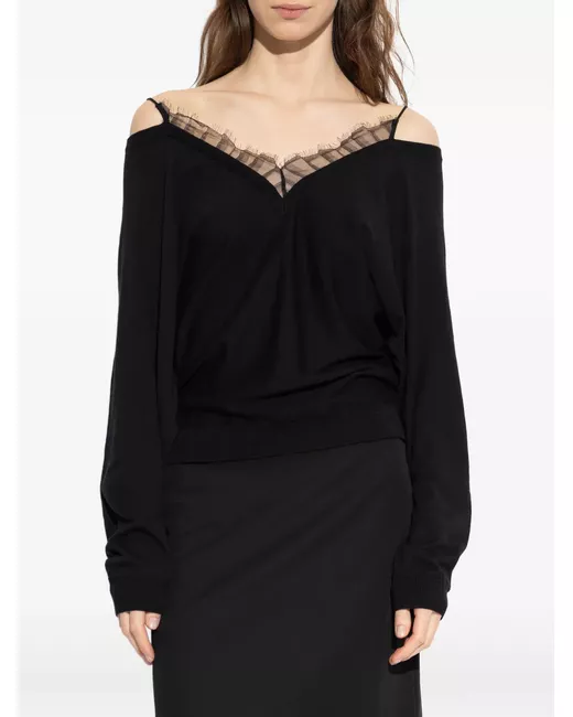 black shoulder straps V-neck lace trim long sleeves fitted cuffs