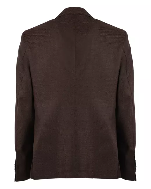 brown virgin wool button detail notched lapels chest welt pocket front flap pockets