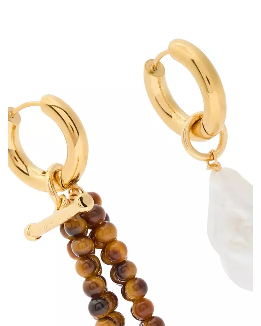 brown hoop design baroque pearl stone beads drop style Normal everyday use and external agents may reduce the lustre of gemstones and gold surfaces. To maintain, use specific, non-abrasive products specially meant for cleaning jewellery. Pearls should be the last thing that you put on in the morning and the first thing you take off at night. Avoid contact with perfumes or creams, and simply wipe with a soft cloth to clean. These earrings intentionally do not match.