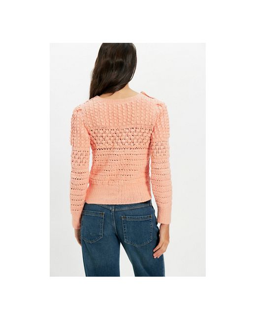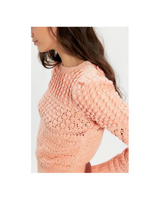 Effortlessly elevate your sweater collection with this whimsical pullover, featuring a fitted, flattering silhouette, a crocheted knit design, and a lightweight cotton fabrication. * Boat neckline * Puffed shoulders * Ribbed trim * Long sleeves Penny Crochet Pullover at Free People in Paradise Peach, Size: XL