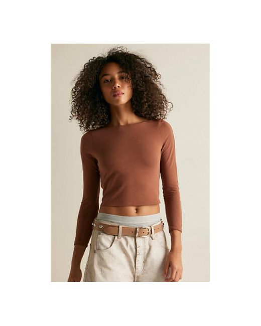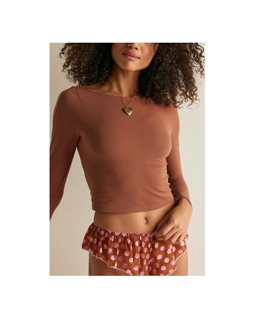 Simple and sophisticated, this long-sleeve tee from Intimately is designed in a soft, textured knit fabrication and adorned with picot trim, an open-back, and a scalloped eyelet tie for a dainty touch. * Soft knit fabrication * Pull-on, cropped long sleeve * Boat neckline * Long, fitted sleeves Blush Hour Long Sleeve by Intimately at Free People in Argan Oil, Size: XS
