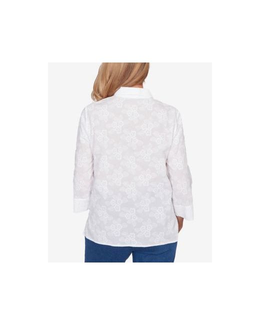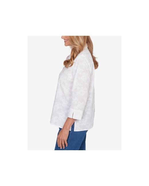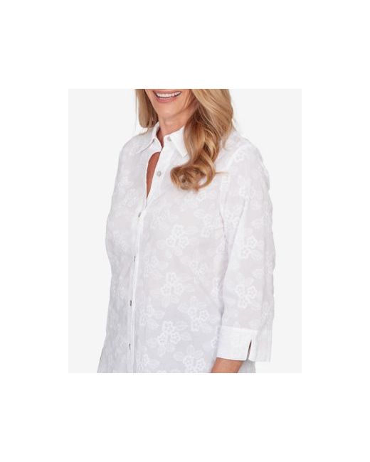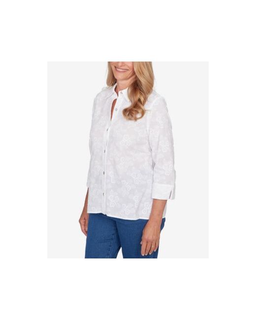 Women's White Classic Collared Flower Embroidered Button Down Top