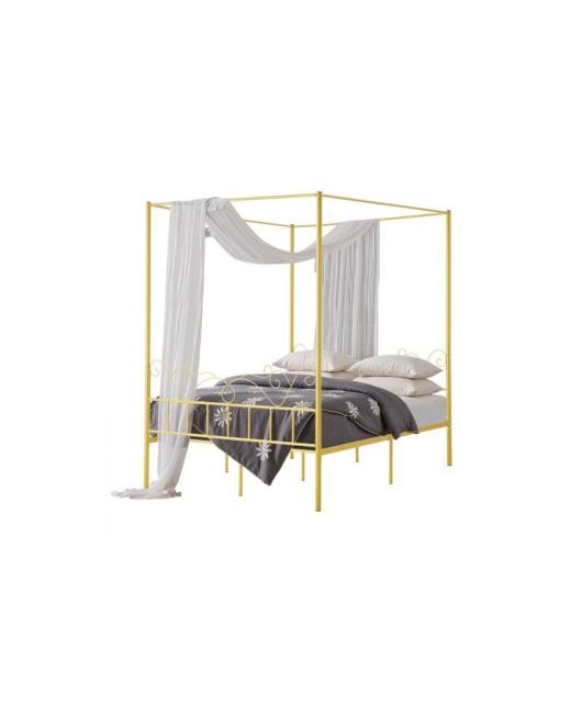 Add a touch of modern sophistication to your bedroom with this metal canopy bed frame featuring a sleek four-poster design and integrated headboard. Crafted from sturdy steel, it provides reliable support for your mattress without the need for a box spring.