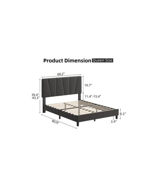 Twin Bed Frame with Headboard Adjustable Velvet Upholstered Platform