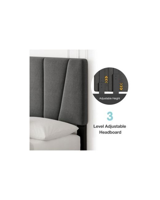 Stylish Comfort: Featuring plush linen upholstery with a chic diagonal stripe design, this bed frame adds a touch of sophistication while providing a soft, cozy feel for maximum comfort