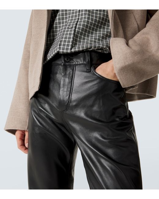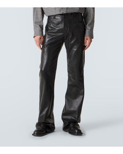 Material: 100% lamb leather. Care instructions: spot clean. Made in Turkey. Designer color name: Black. Leather. Lining: 50% acetate, 50% viscose. Belt loops. Pockets: five pockets. Contains non-textile parts of animal origin. Closure: zip and button fastening.