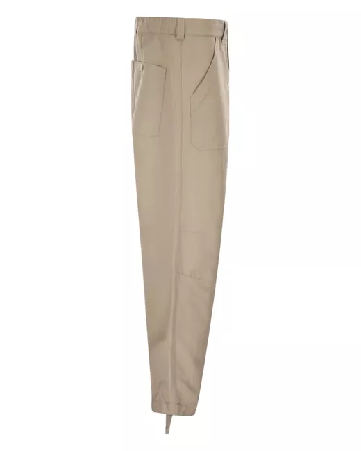 Linen and Cotton Drill Trousers with Patch Pockets Drawstring
