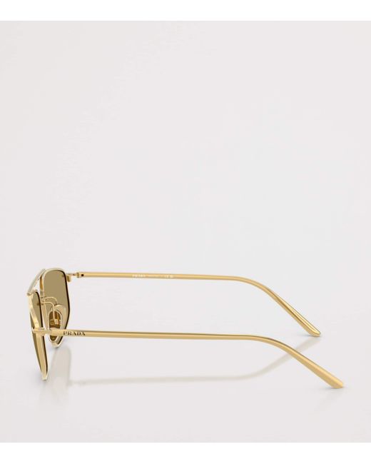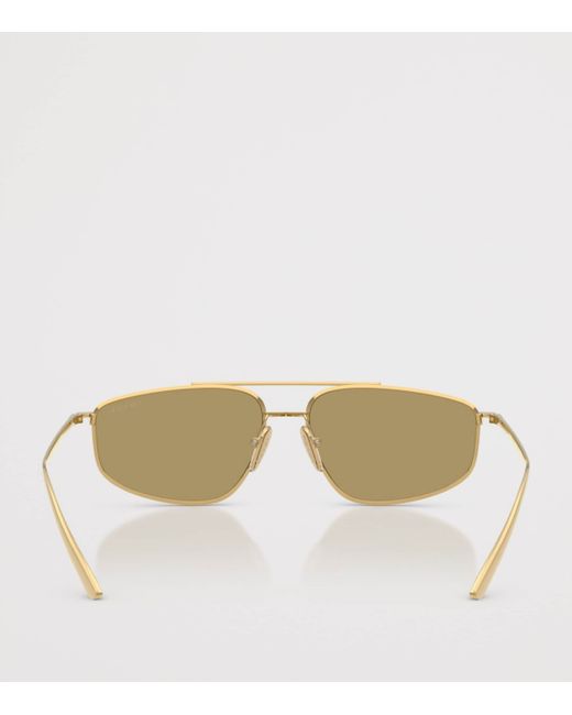 Prada reimagines the classic aviator style with these sunglasses. The pair features the same slim metal frame and double bridge as its original counterpart, but swaps curved lenses for angled rectangular ones, resulting in a contemporary design that exudes retro appeal while remaining timeless.