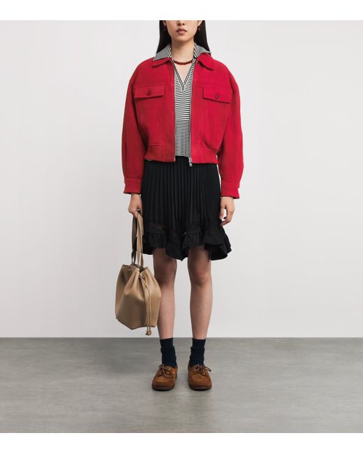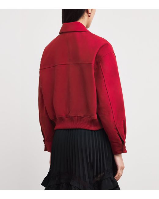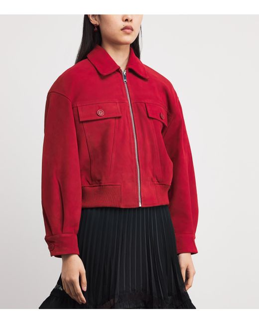 Crafted from split goat leather with a wide, relaxed fit, this jacket from Claudie Pierlot introduces a retro twist to your wardrobe. The ribbed hem evokes classic bomber designs, while the collar lends a subtle sophistication while adding depth and dimension to the look.