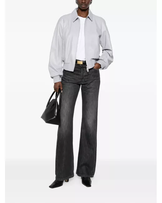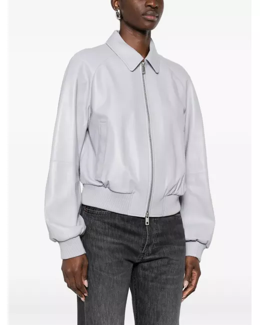 Women's Gray zip leather jacket
