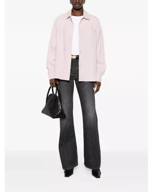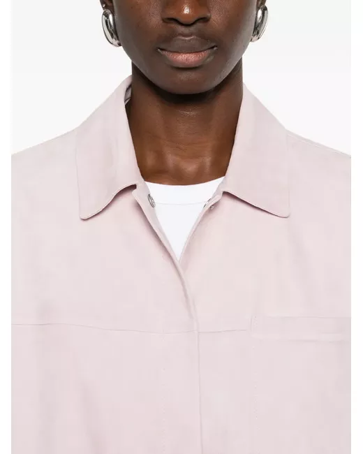 pale pink suede long sleeves point collar snap button fastening panelled construction