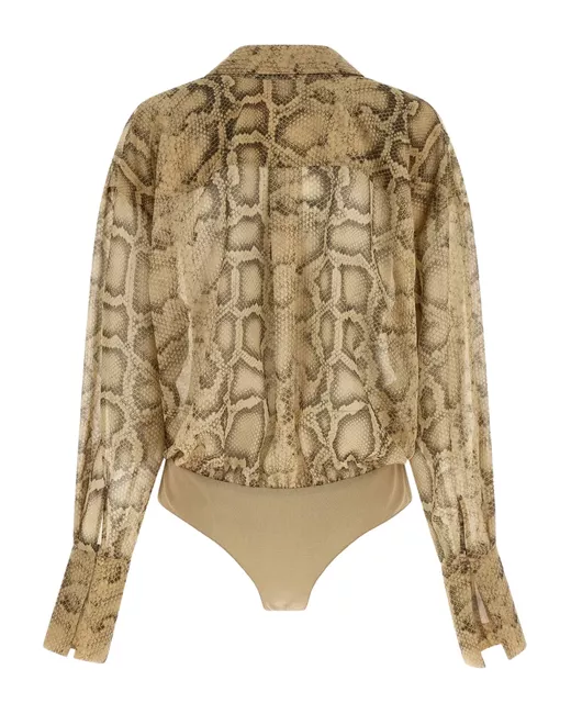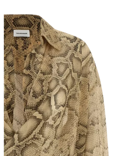 beige python print shirt collar long sleeves dropped shoulder front draping