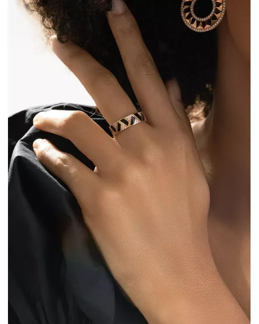18K rose gold black enamel geometric design Normal everyday use and external agents may reduce the lustre of gemstones and gold surfaces. To maintain, use specific, non-abrasive products specially meant for cleaning jewellery.