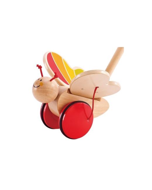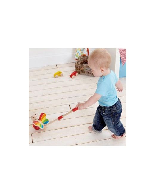 Engage little walkers with this spinning, flapping, twisting, walking companion! The beautiful wood design and bright colors capture interest as little ones build hand-eye coordination, balance, and gross motor skills. Features activate as the child pushes the toy around. Measures 18 tall.