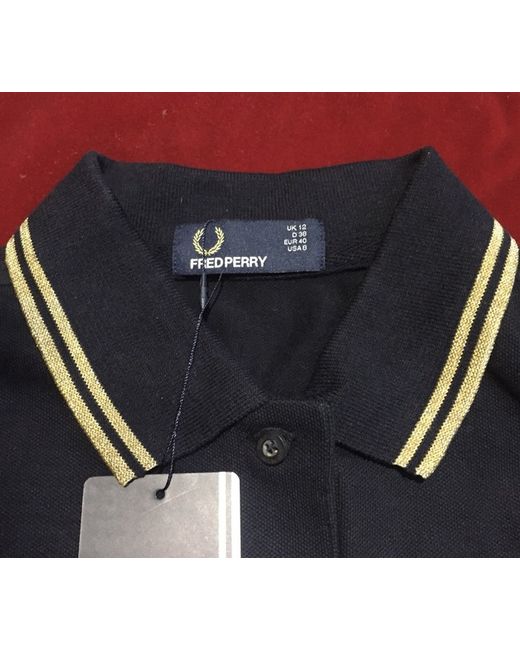 Fred Perry Ladies Navy 2 Button Polo with Gold Metallic Trim in size 12 new and still in its packaging