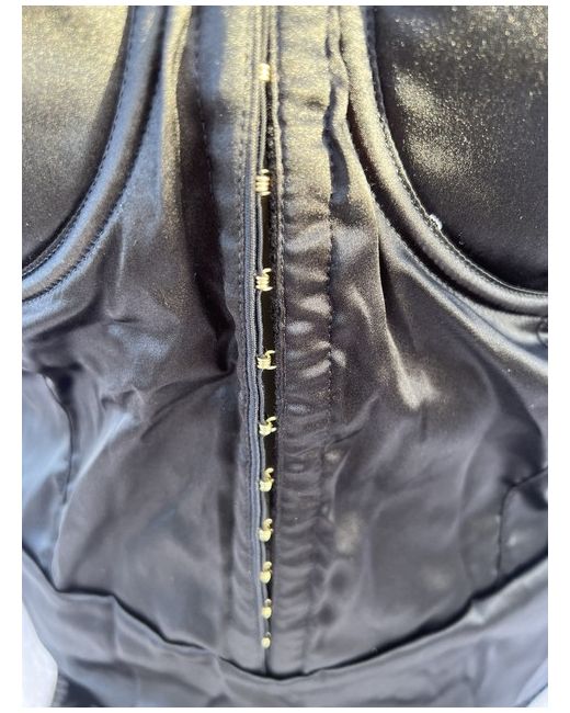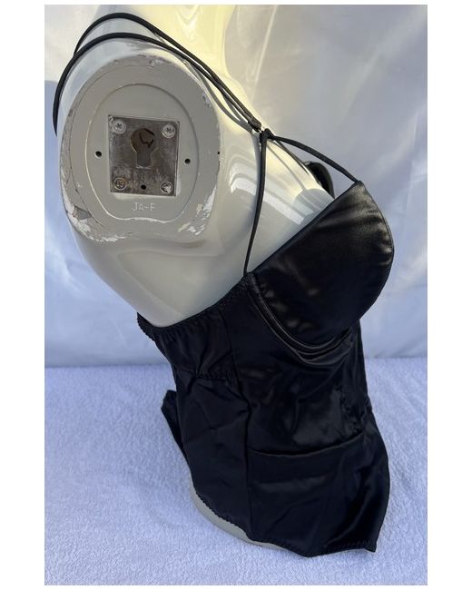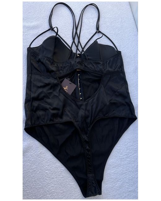 “For your pleasure of sensuality & the finest erotica” 95% silk, 5% elastane concealed hook-and-eye fastenings at front regular fit, V-neck, adjustable shoulder straps, soft mounded cups with underwriting, gold-toned hardware, all over satin texture, cut out panel at back, elasticated strap at back, V-string at back XL