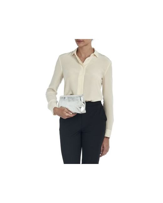 Il Bisonte Classic Manuela Leather Clutch.Color:Silver.Material:Main: leather; lining: 100% cotton.Handbags & Wallets.