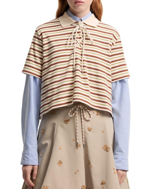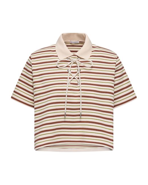 A striped motif infuses this polo shirt with a graphic touch. Made from cotton Collar with lace-up closure Short sleeves Striped print Base fabric: 100% cotton; collar rib: 100% cotton Wash max 30c - mild process; do not bleach; do not tumble dry; ironing maximum temperature 110c - without steam; do not dry clean; professional wet cleaning - mild process; flat dry in the shade; wash separately; wash inside out; protect trims while washing; iron inside out; do not iron decorations; iron with a cloth between Imported ABOUT THE BRAND Named after the beautiful Alpine town of Monestier-de-Clermont near Grenoble, France, the luxury outerwear brand debuted in 1952 with quilted sleeping bags and down jackets created to protect the town's workers from the elements. Today, Moncler's insulated, high-performance gear is supplemented with après ski styles for women, men and kids, as well as shoes and winter accessories. Lsd Mens - Moncler > Moncler > Saks Fifth Avenue. Moncler. Color: White Brown. Size: XS.