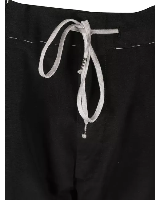 black visible stitching drawstring fastening side button fastening rear welt pocket straight leg