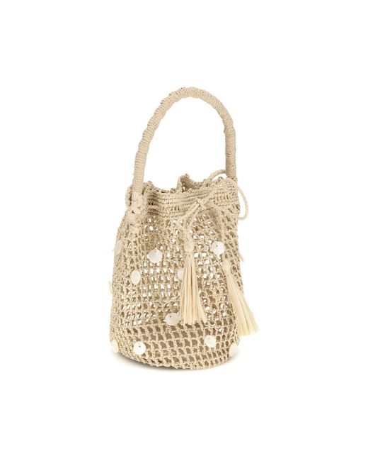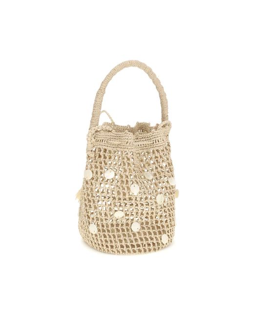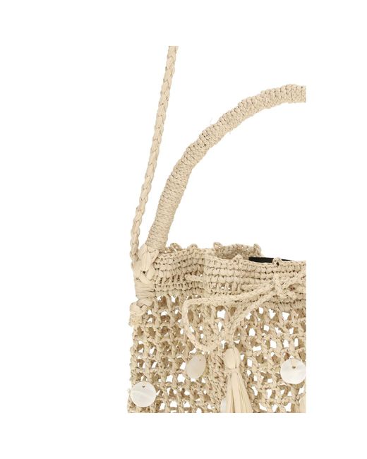 The Precious Moments Bucket Bag by Alanui is handcrafted from natural raffia and embellished with elegant mother-of-pearl details. Equipped with a handle and shoulder strap, it features a practical drawstring closure that combines functionality and style. Season: SS26 Composition: 100% Raffia