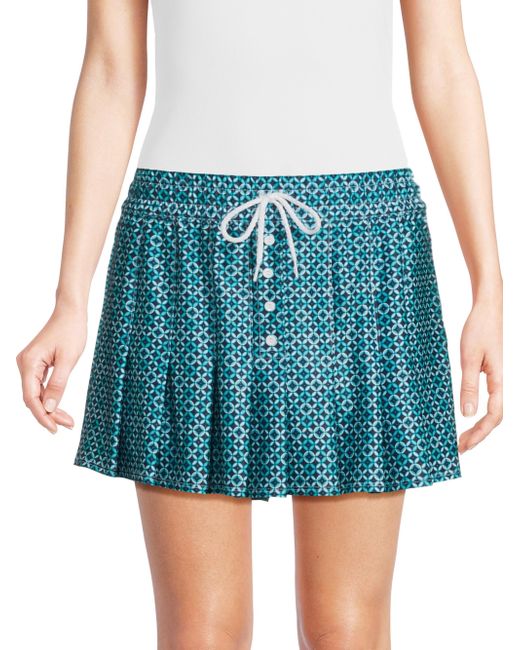 From the Eyelet You Win collection. Lucky in Love's Winner's Circle skort is tailored with a high waist and inverted pleat skirt design. Finished in retro-inspired foulard prints, this easy-flowing design is crafted from a lightweight performance jersey. Drawstring waist Interior short pockets Interior shortie Pulls on 87% polyester/13% Lycra spandex Machine wash Imported SIZE & FIT Rise: about 13.5" Model measurements: 5'10" tall Model is wearing a US size Small. Modern Collections - Modern Active > Lucky In Love > Saks Fifth Avenue. Lucky in Love. Color: Aquamarine. Size: XS.