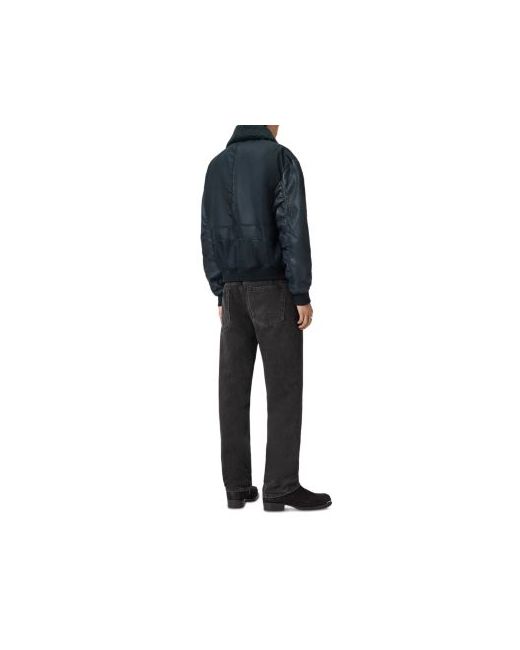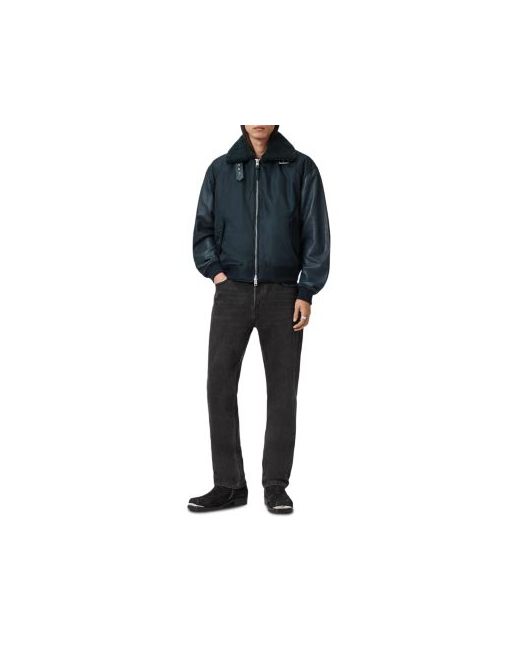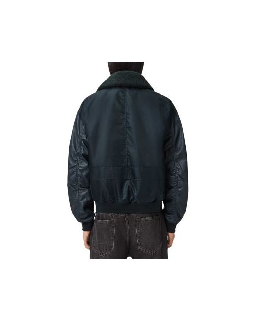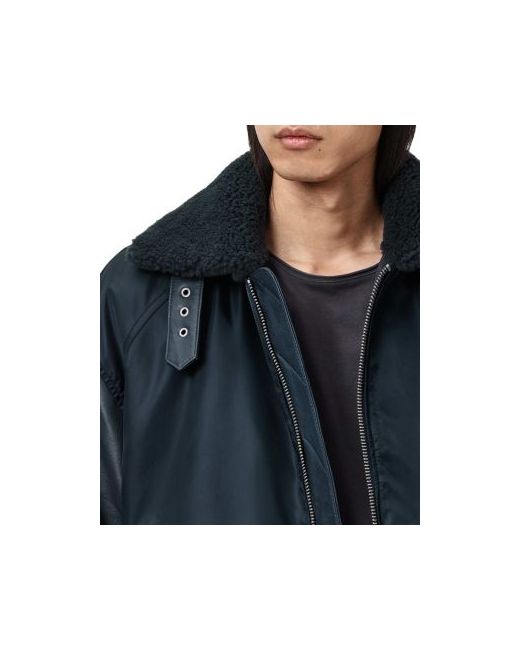 Inspired by authentic Ma-2 flight jackets, the Allsaints Elton is a warm and comfortable version crafted in durable nylon twill with leather sleeves. It features a removable genuine shearling collar and a strong front zip.