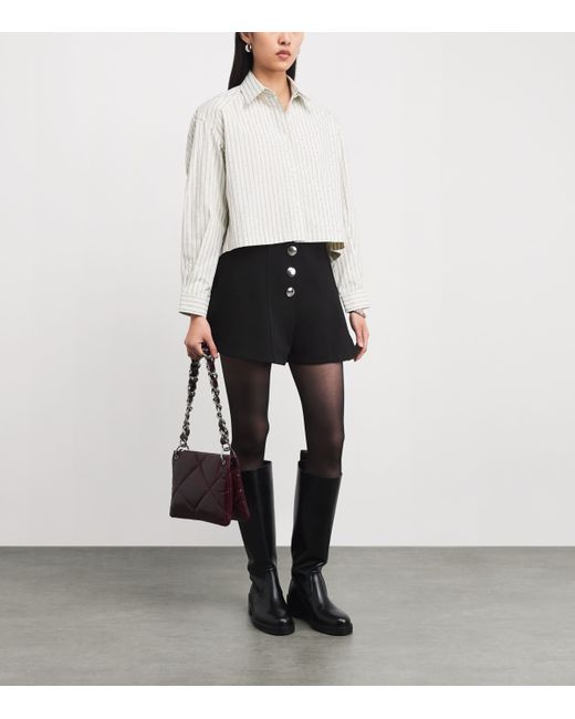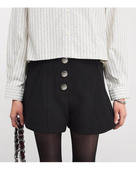 Rooted in Parisian cool since its founding in 1984, Sandro Paris has built its reputation on a refined yet expressive take on modern dressing - where classic tailoring meet effortless attitude. These flared shorts reflect that duality, combining a clean, sculptural silhouette with oversized metal press studs across the front that bring graphic energy and edge.
