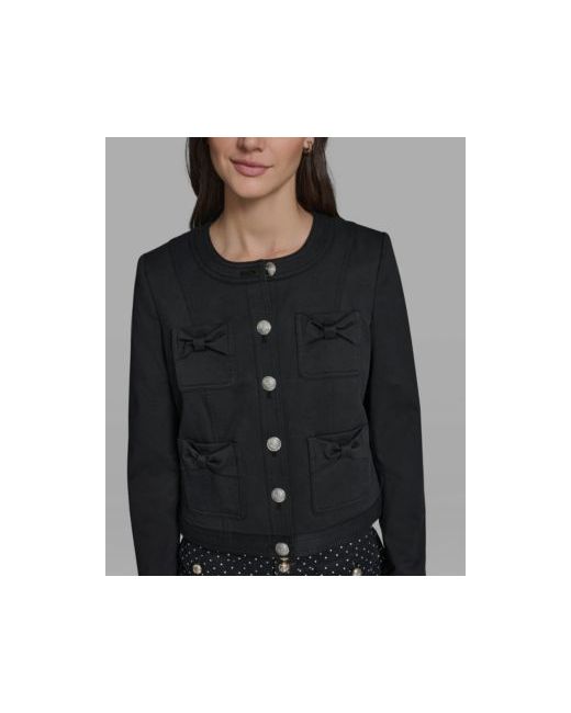 Elevate your everyday outerwear with this Karl Lagerfeld Paris jacket, designed with subtle shoulder padding for a polished, structured silhouette. It features a front button closure and multiple pockets that blend timeless sophistication with practical functionality.