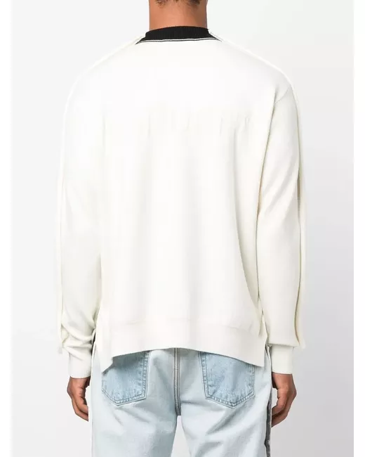 black and white wool blend knitted construction colour-block design stripe detailing crew neck long sleeves ribbed trim