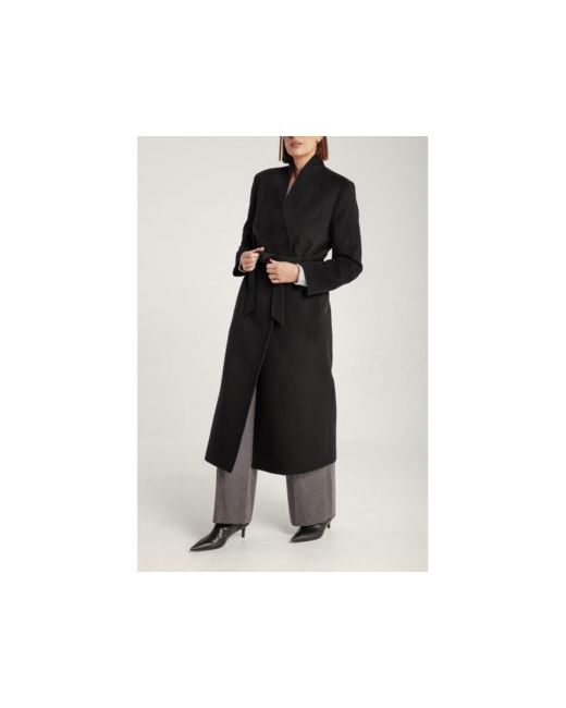Elegant cashmere drapes into a structured belted silhouette, offering warmth, sculptural shape, and an office to evening presence.