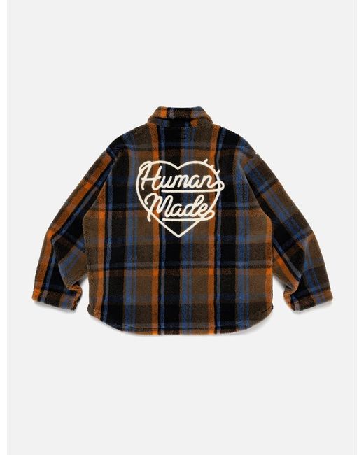Human MadeFleece PulloverMade of lightweight polyester-wool boa fleeceJacquard weaved check patternCollar with button placketHeart logo patch on the left chestThick chenille-embroidered heart motif on the backColor: Brown